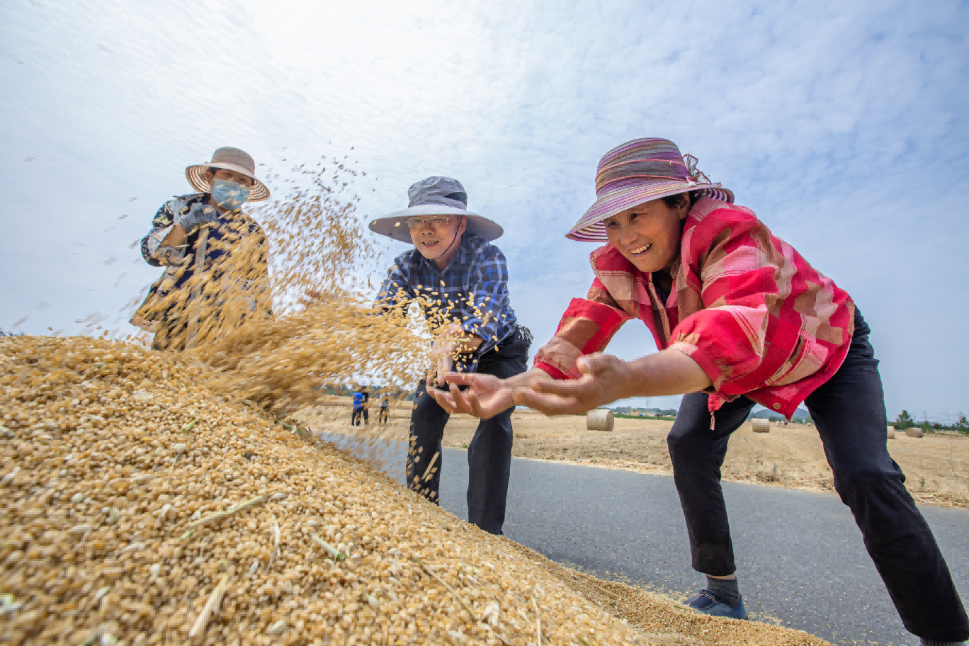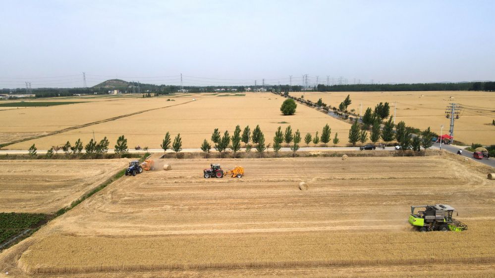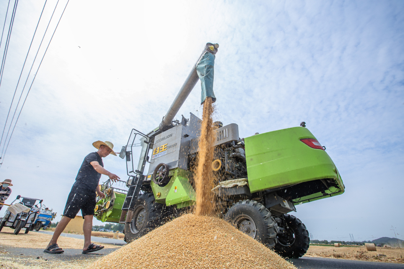 Currently,as wheat gradually ripens and enters the harvesting period,farmers in LuoZhuang District,Linyi City,Shandong Province,seize the opportunity of fine weather to start reaping the wheat,ensuring that the summer grains are safely stored.