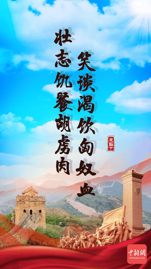 壮志饥餐胡虏肉,笑谈渴饮匈奴血。