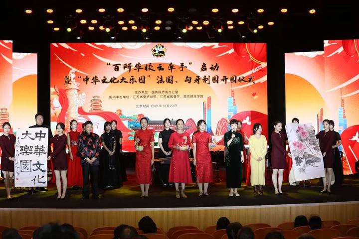 10月23日下午,“百所华校云牵手”启动暨“中华文化大乐园”法国、匈牙利园开园仪式在南京晓庄学院举行。来自五大洲25个国家156所海外华文学校和江苏省内158所学校初步达成牵手结对合作共建意向。法国、匈牙利11所华校600余名华裔青少年在线观看了2021年“中华文化大乐园”法国、匈牙利园开园仪式。省委统战部副部长、省侨办主任王华出席活动并讲话,中国驻匈牙利大使馆齐大愚大使、中国驻法国里昂总领事馆陆青江总领事出席线上活动并致词,中国驻马来西亚大使馆赵长涛教育参赞参加线上活动。开园仪式由省侨办副主任杜伟主持。