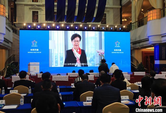 香港特别行政区行政长官林郑月娥通过视频致辞表示,成渝地区发展空间广阔,是香港融入国家发展大局的理想台阶,香港特区政府会继续积极支持港商参与成渝地区的发展,相信港企凭借自身的独特优势,与内地企业携手合作,定能为成渝地区成为具有全国影响力的重要经济中心做出贡献。