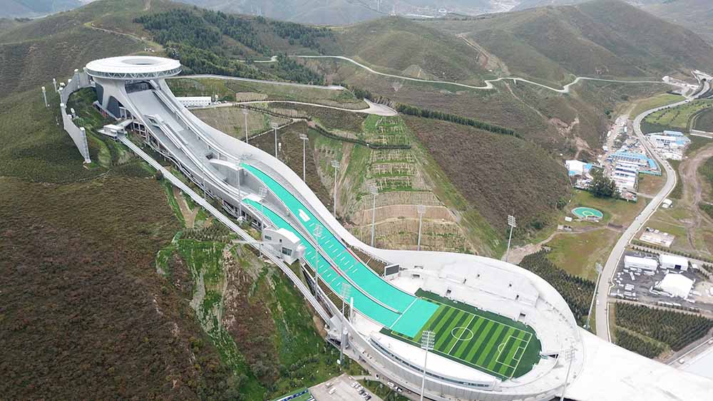 航拍国家跳台滑雪中心“雪如意”。图/中新社