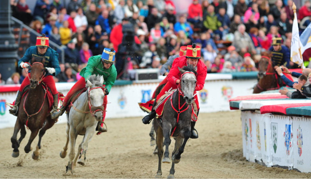 许多城镇还增添了马术、马车的旅游项目,连只有几千人口的小镇也不例外。通常表演者会身着传统服装,手持长鞭,表演精湛的骑术,并与马儿互动,难度系数最高的便是站在马背上驾驭多匹骏马在场地疾驰。2018年,17岁的匈牙利人凯文·里希特(Kevin Richter)甚至创造了可同时驾驭20匹马的吉尼斯世界纪录。