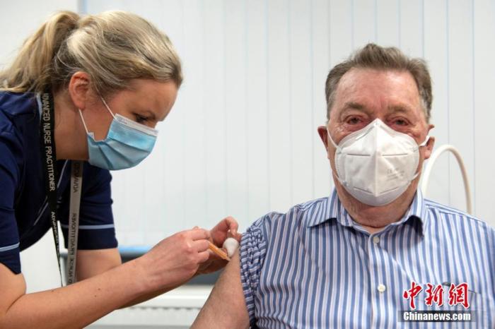资料图:英国苏格兰邓迪的洛基健康中心,护士为一名老人注射新冠疫苗。