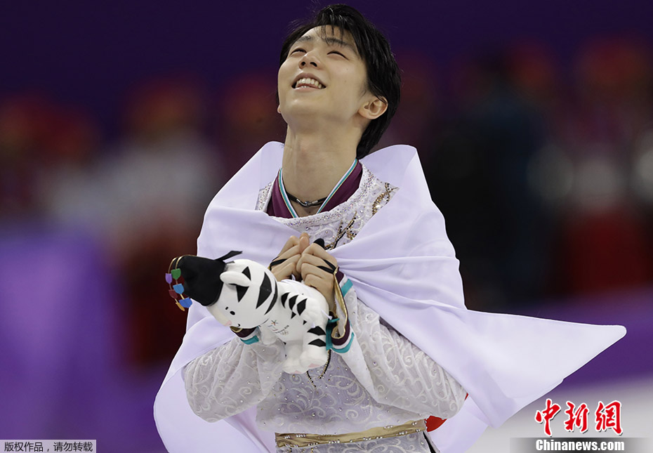 资料图:平昌冬奥会花样滑冰男单自由滑比赛结束,卫冕冠军羽生结弦以总成绩317.85分获得金牌,成为自1952年以来,66年后首位蝉联冬奥会男单冠军的选手。