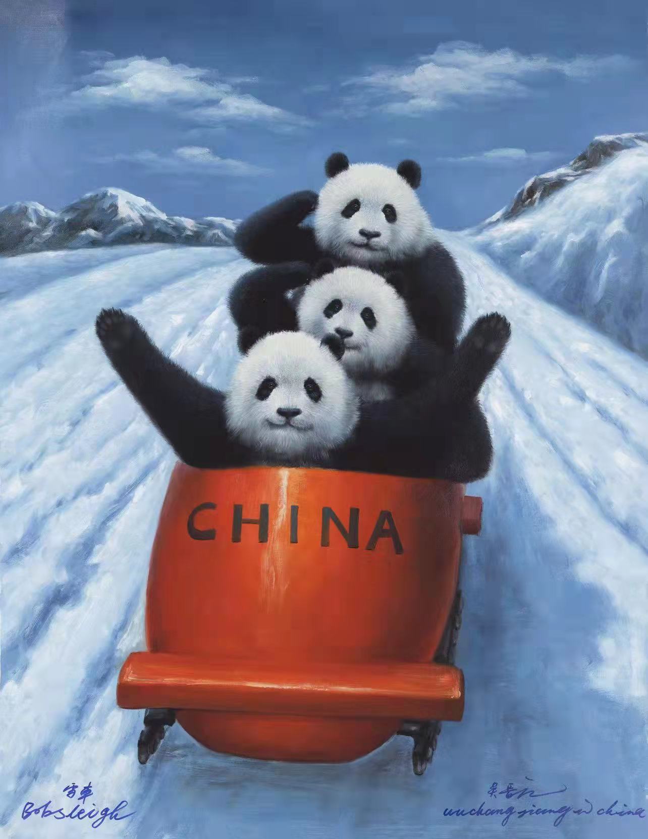 Giant pandas are the national treasure of China,how to use panda culture as a carrier,art as a method to embody tradition and reality and to disclose the spiritual connotation of pandas in this new generation is a new challenge,exploration,and vision on Wu Changjiang's road of art.Wu told the reporter:"This is the opportunity of making these works,I used the Olympic spirit and panda culture as links to add beautiful colors of humanities while pushing forward winter sports with the power of art."