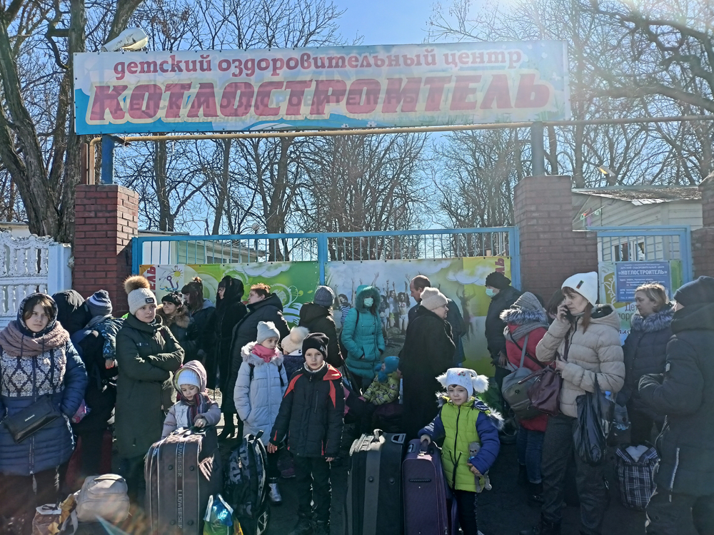 2月19日,难民抵达俄罗斯南部罗斯托夫州的一处临时安置点。图/新华社