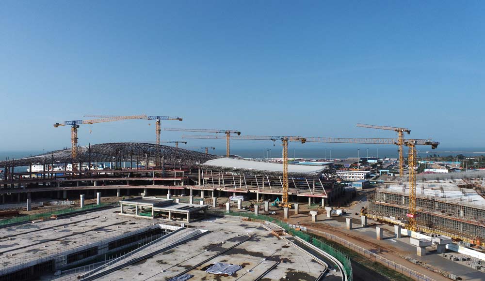 海口新海港客运综合枢纽项目是海南自由贸易港重点建设项目之一。图为海口新海港客运综合枢纽项目施工现场。图/新华社