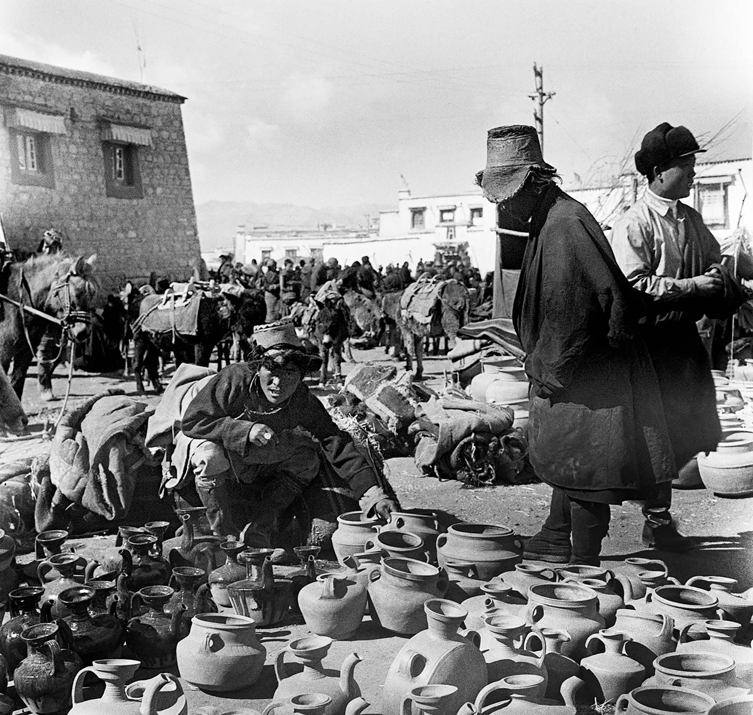 20世纪50年代,拉萨居民购买酥油茶壶。图/新华社