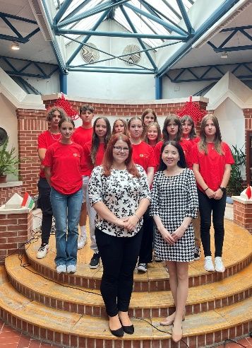 当天下午,陈昆参赞一行还到访兹瑞尼中学(Zrínyi IIona Gimnázium),参加了2022-2023学年首届汉语专业开学典礼和学校多媒体绿幕教室揭牌仪式。汉语作为第一外语被纳入该中学的课程体系,成为载入米市教育发展史的重大事件,对该地区汉语教学起到示范作用,也标志着米什科尔茨大学孔子学院秉持的汉语教育本土化发展理念,得到了米市政府和社会力量的大力支持,国际中文教育事业进入了全新发展阶段。12位兹瑞尼中学生主修汉语专业,开始系统地学习汉语。他们踌躇满志的学习状态正如国际中文教育事业的海外发展愿景一样,让人抱有无尽期待。