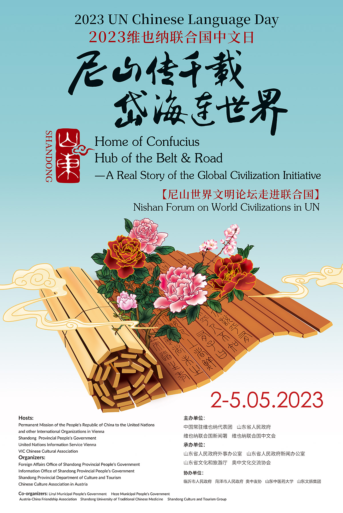 2023维也纳联合国中文日活动将于5月2日在维也纳联合国办事处驻地维也纳国际中心开幕。本次维也纳联合国中文日由中国常驻维也纳联合国代表团与山东省人民政府联合主办,以“尼山传千载岱海连世界——全球文明倡议的生动故事”为主题,将向包括各国常驻维也纳联合国外交官、各国际组织官员、新闻媒体记者在内的各界人士全面展示山东作为孔子故里和“一带一路”重要枢纽的深厚文化、锦绣山河和悠久历史,生动讲述中华文明与全球文明交流互鉴的真实故事。