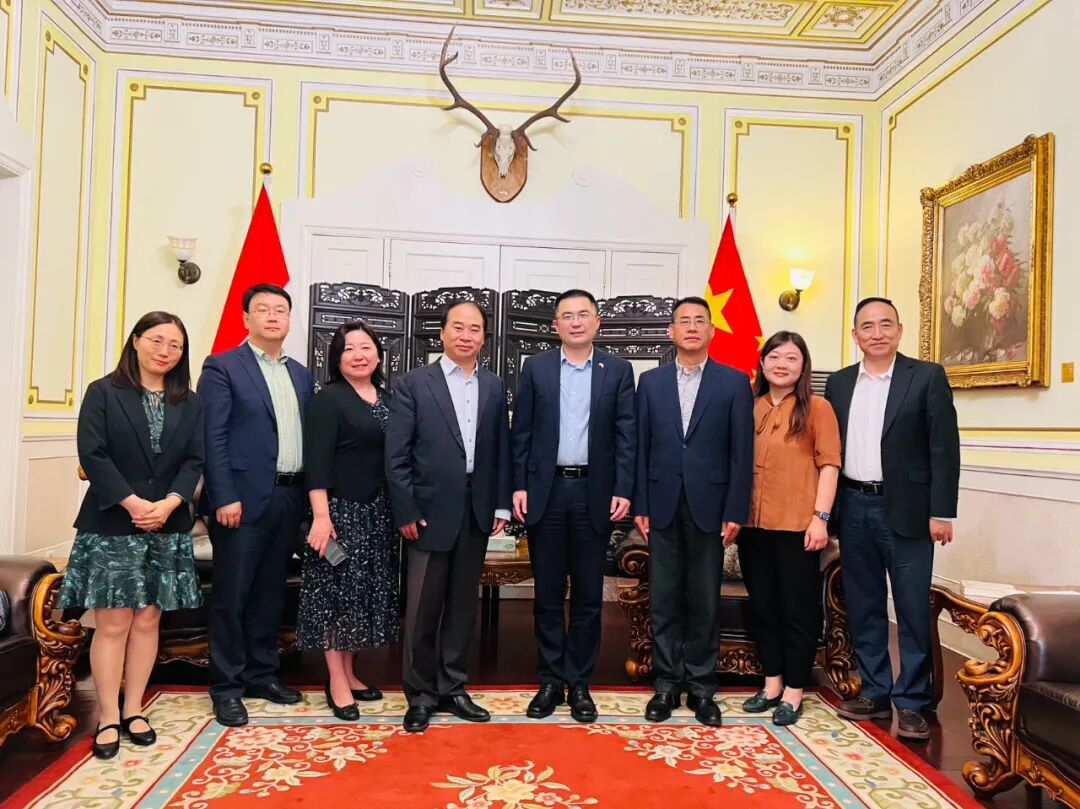 中国驻匈牙利使馆临时代办杨超会见北京外国语大学王定华书记一行