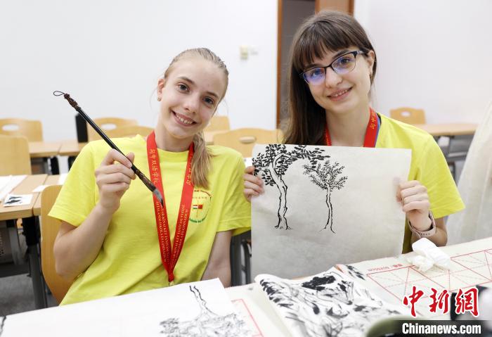 同样第一次体验中国国画的多丽娜(Inges Dorina)和丹丽娜(Inges Denissza)姐妹,分别采用了不用的技法,画出了两棵不同的树。“中国的文化很特别,有茶、有京剧、有历史……”在众多的文化体验中,姐姐多丽娜最喜欢京剧,即将升入12年级的她表示“想考中国的大学”。