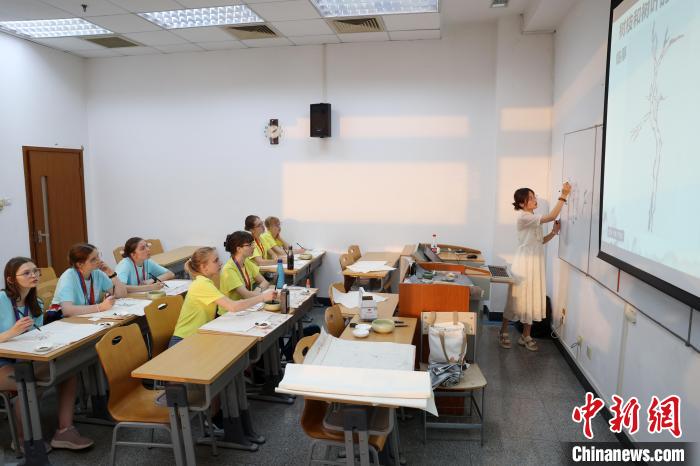7月18日,匈中双语学校“汉语桥”夏令营访华团的学生正在学习中国画技巧。图/中新网