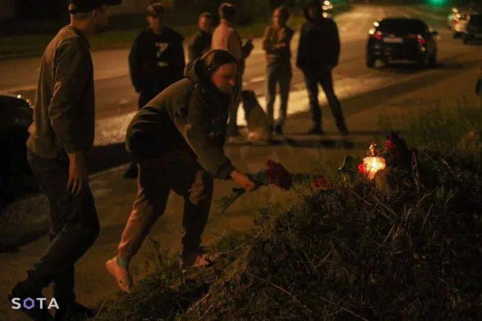 当地时间24日,有人前往瓦格纳大楼献花。图片来源:社交媒体频道“灰色地带”。