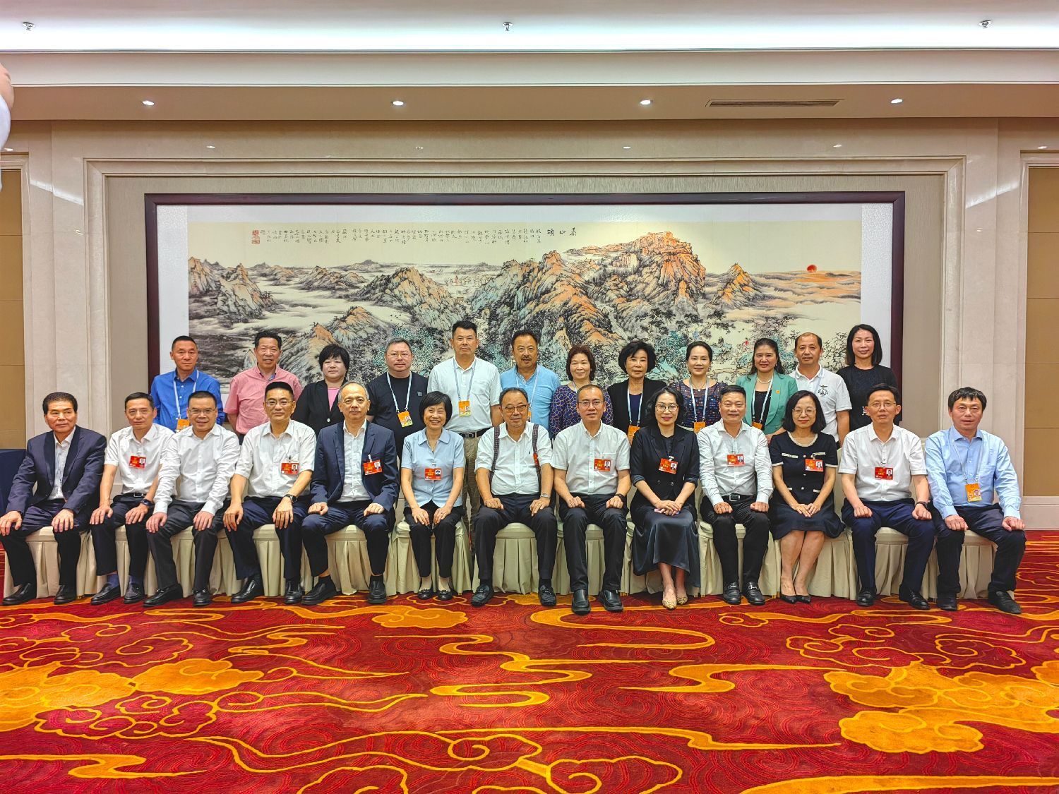 中国侨联联络联谊部部长桑宝山(左五)与林胜琴(右五)等代表合影。