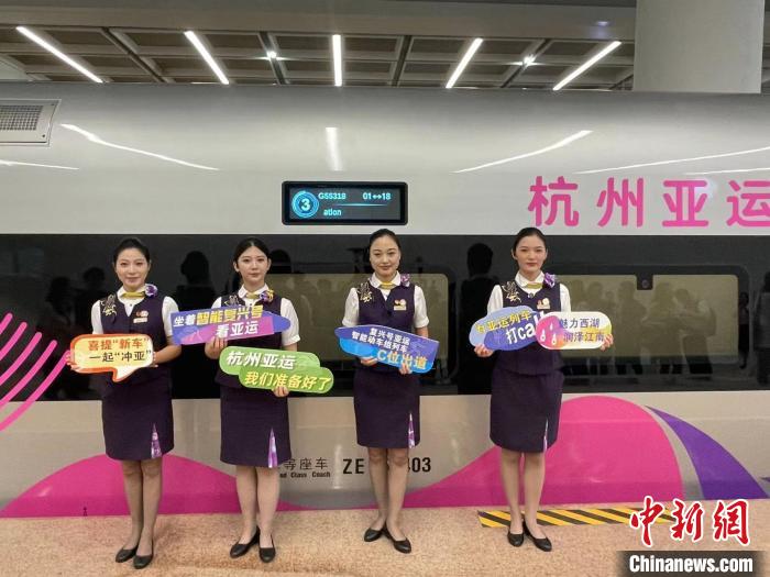 为服务亚运,杭州客运段从上千名乘务人员中遴选出44名业务技能精、外形条件好、综合素质强的乘务员,组建亚运服务专班,从语言、形体、客规、应急、亚运知识、亚运文化等诸多方面着手,开展为期3个月的集训。本周起,这批乘务人员也将陆续投入到杭州亚运会高铁乘务工作中。