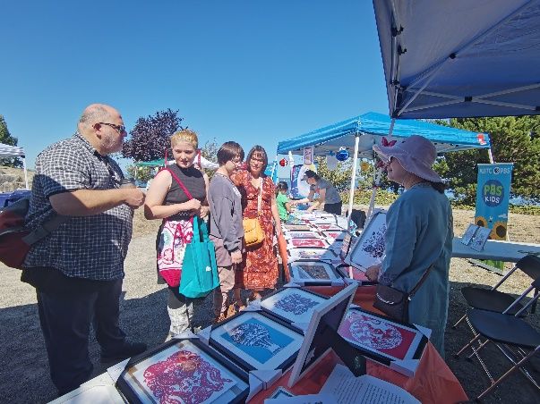 张丽丽在2023年美国塔科马市中秋嘉年华活动中向当地民众介绍中国剪纸。图/中新社