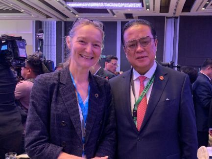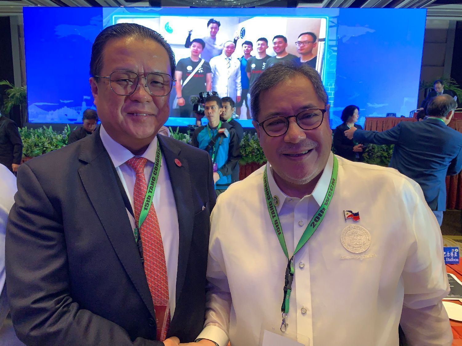 陈震博士(左)与菲律宾卫生部长贺博萨(右)合影。