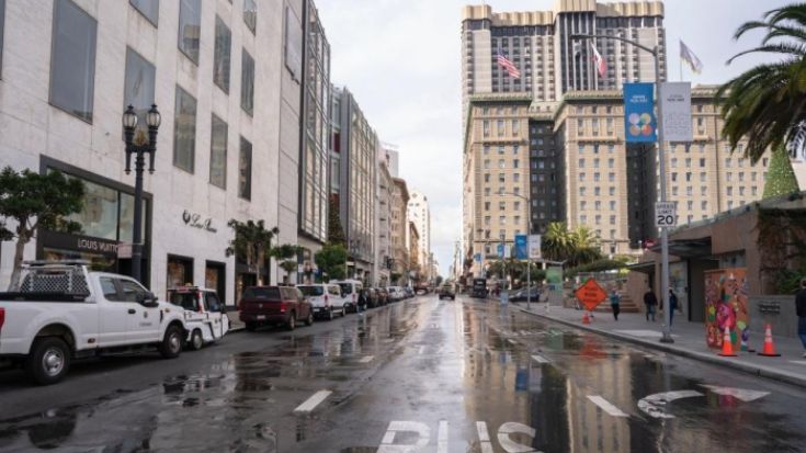当地时间11月13日,美国加州旧金山联合广场周边刚刚被冲洗过的街道较往常更为整洁。近期,随着APEC会议开幕,旧金山对地面、垃圾桶、厕所等公共设施展开清理和维护。同时,该市开放了额外的庇护所床位,以吸引无家可归者离开街道。图/中新社