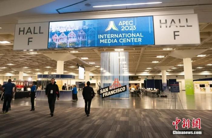 当地时间11月12日,各国记者在美国加州旧金山2023APEC会议国际媒体中心工作。中新社记者刘关关摄