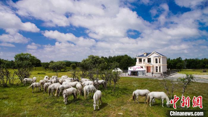 图为阿拉腾巴特尔家的牧场,不远处是于2020年新建的别墅。图/均来自中新网