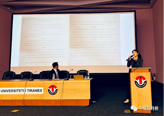 靳乔以“中国与阿尔巴尼亚高等教育交流与人才培养”为题,用阿尔巴尼亚语向地拉那大学的师生和当地民众解读了中阿两国教育交流与人才培养的相关政策与具体实践,探讨自两国建交以来,高等教育领域的实践和创新。讲座通过大量的历史档案文件和照片,回顾了中阿两国政府间、校际间的合作历程。基于历史资料,进一步分析了新时期两国高等教育合作与人才培养的传承与创新。尤其在“一带一路”倡议下,两国高等教育合作相关政策得到了进一步强化和细化,在人才培养的具体实践中更为深化、多元化和国际化。