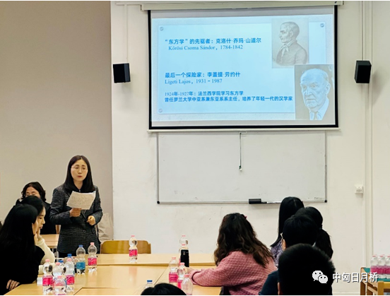 郭晓晶以“20世纪中国文学在匈牙利的传播”为题,以中匈双语向孔子学院师生讲述了中匈文化交流史,介绍了中国文化在匈牙利传播的不同阶段、中国文学在匈牙利的译介特点以及匈牙利诗人裴多菲在中国的影响。她在讲座中提到,匈牙利人对中国文化情有独钟,几乎所有的中国古典文学和现当代文学都有匈语翻译版本。匈牙利文化同样在中国影响深远,裴多菲的《自由与爱情》一诗,贯穿了中国救国图存的历程,激励了无数进步青年朝着理想奋进,见证了中国的社会、民主变革。