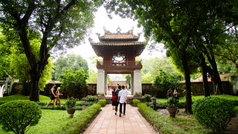 在众多古建筑中,最为著名的当属文庙—国子监,作为河内的标志性建筑,也被印在了越南的纸币上。黄瓦青砖的建筑群由五组院落组成,已有近千年历史。受中华文化影响,文庙起初修建是为供奉周公和孔子,后建立国子监,成为越南教育史上第一个正式的国学堂。