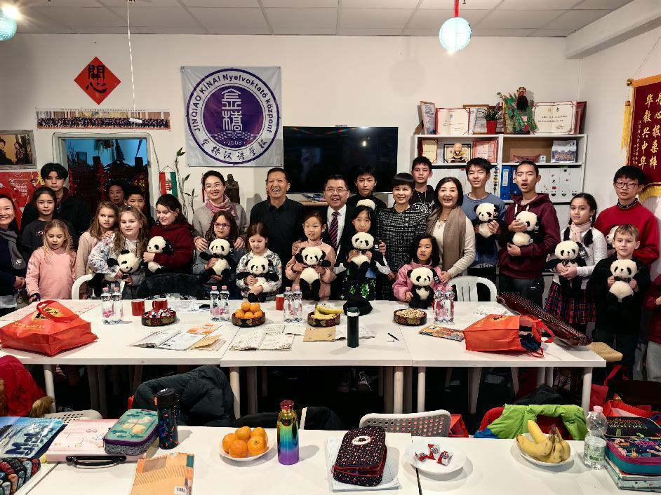 之后,龚大使赴匈牙利金桥汉语学校看望在校师生代表,了解询问同学们的学习情况,与大家交流互动并鼓励孩子们努力学习中文,深入了解历史文化,成为讲好中国故事、传播中华优秀文化、深化中外友谊的使者。活动结束后,龚大使为每名学生代表赠送了学习用品和熊猫玩具。