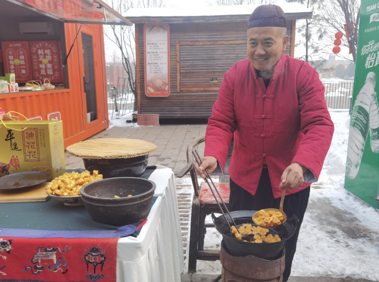 “晋商万里走天涯,出门必带田隆祥的油花花。”在平遥古城西门外,平遥田隆祥油花花第四代非遗传承人田宝荣正卖力吆喝。“油花花是当年晋商走南闯北的干粮,希望广大游客在春节来平遥品味晋商味道。”田宝荣说。