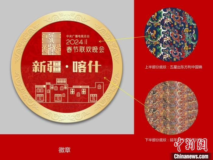 图为中央广播电视总台《2024年春节联欢晚会》喀什分会场纪念徽章设计图。图/中新网