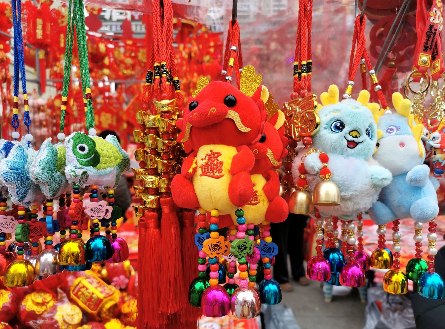 该市场商户孔航洲告诉记者,含龙元素的年货,他今年新上了二三十种,龙形玩偶、龙式窗花和对联卖得好,目前已基本售罄。他表示,今年的年货销量相较往年有大幅上升,据以往经验,年货销售高峰预计持续到元宵节。