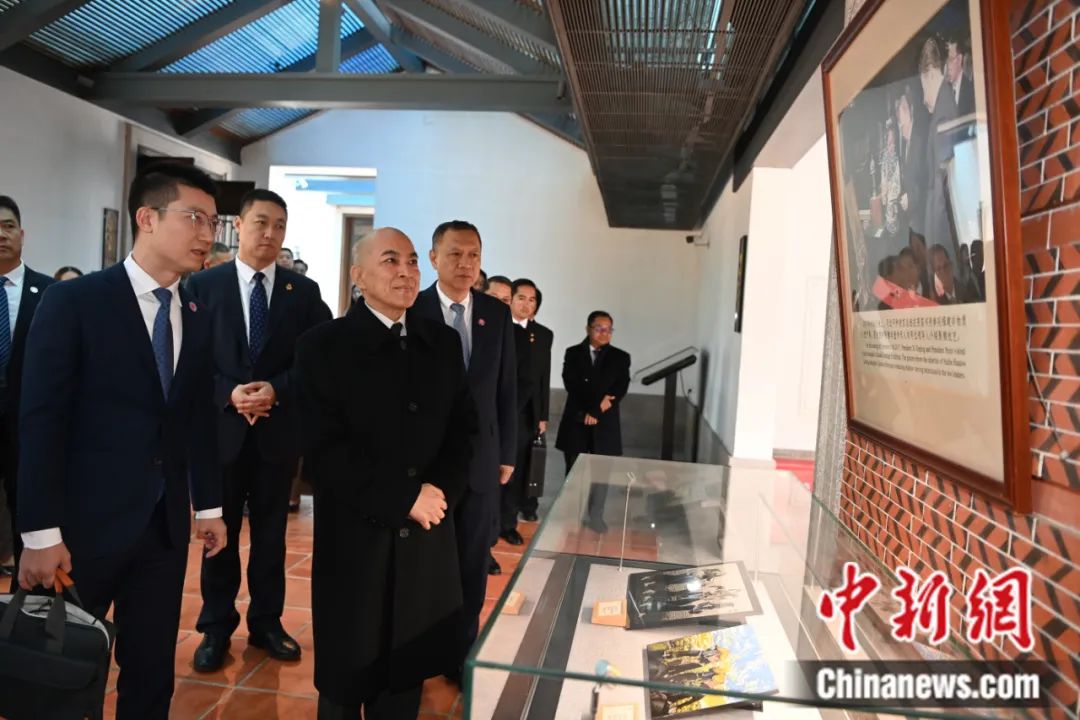2023年12月21日,柬埔寨国王诺罗敦·西哈莫尼一行在厦门筼筜书院观看非遗展览。图/中新网