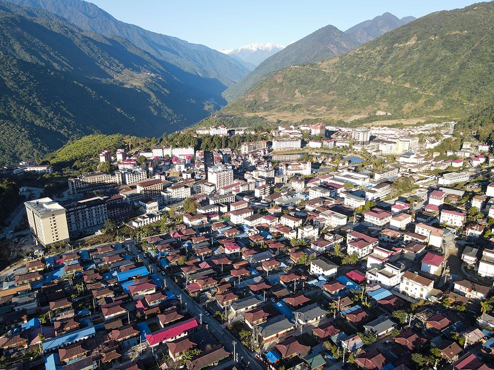 2023年12月19日,西藏自治区林芝市墨脱县全貌,画面下方区域即为墨脱村。图/中新社