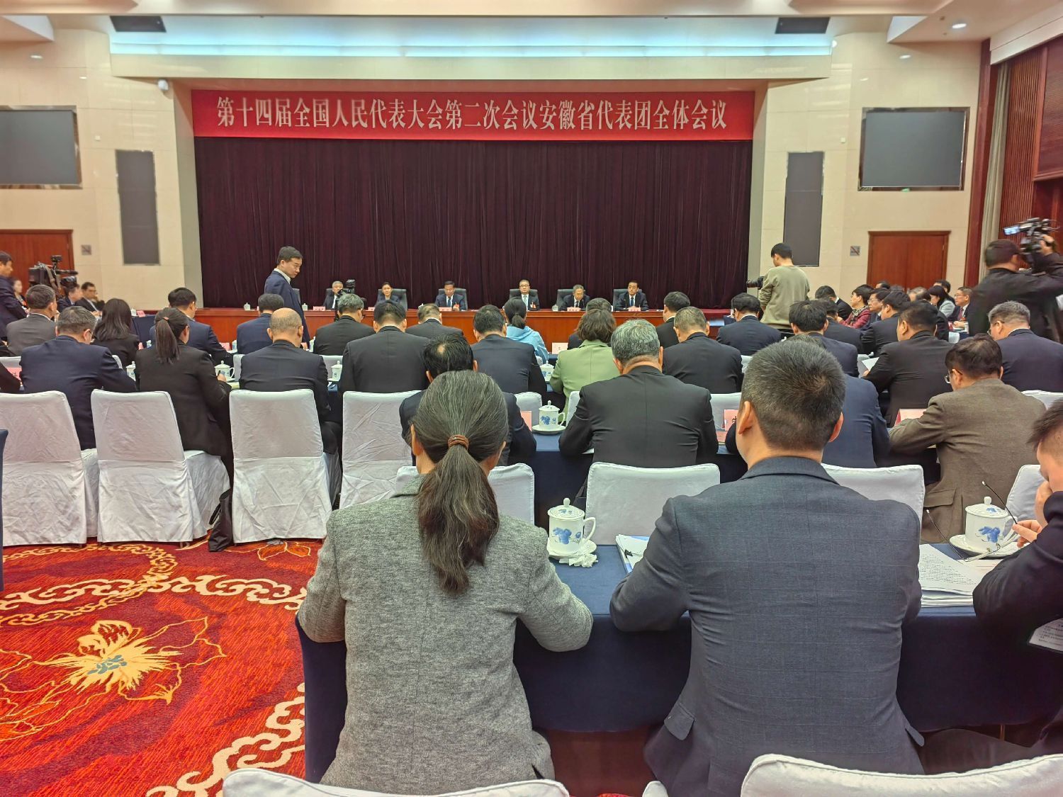 3月6日下午,十四届全国人大二次会议安徽代表团举行团组会议,中外媒体把镜头投向安徽代表团,深入了解现代化美好安徽建设发生的新变化、取得的新成效。全国人大代表、省委书记、省人大常委会主任韩俊主持会议并回答记者提问,全国人大代表、省委副书记、省长王清宪答记者问。