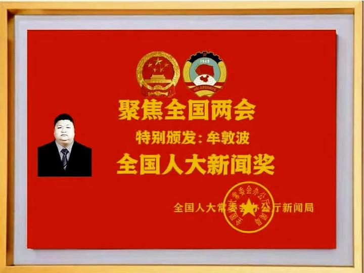 聚焦全国两会还特别为牟敦波董事长颁发了全国人大新闻奖。