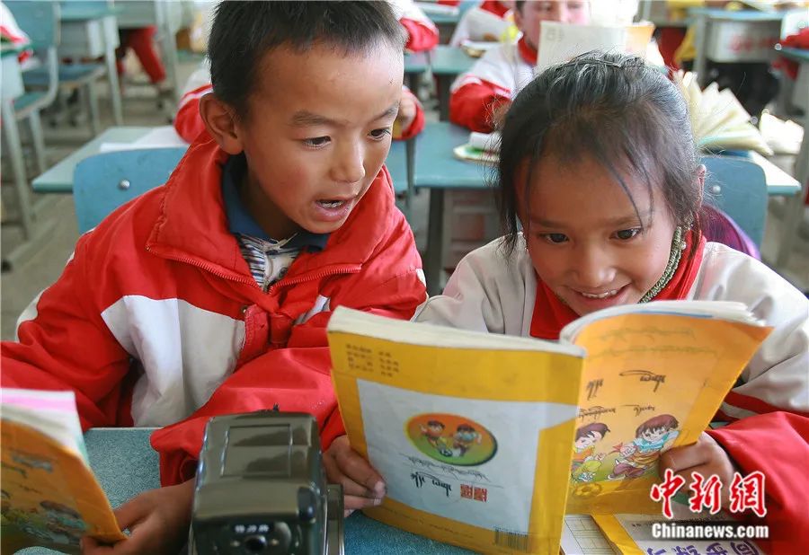 西藏日喀则市上海实验学校的课堂上,孩子们在朗读课文。图/中新网