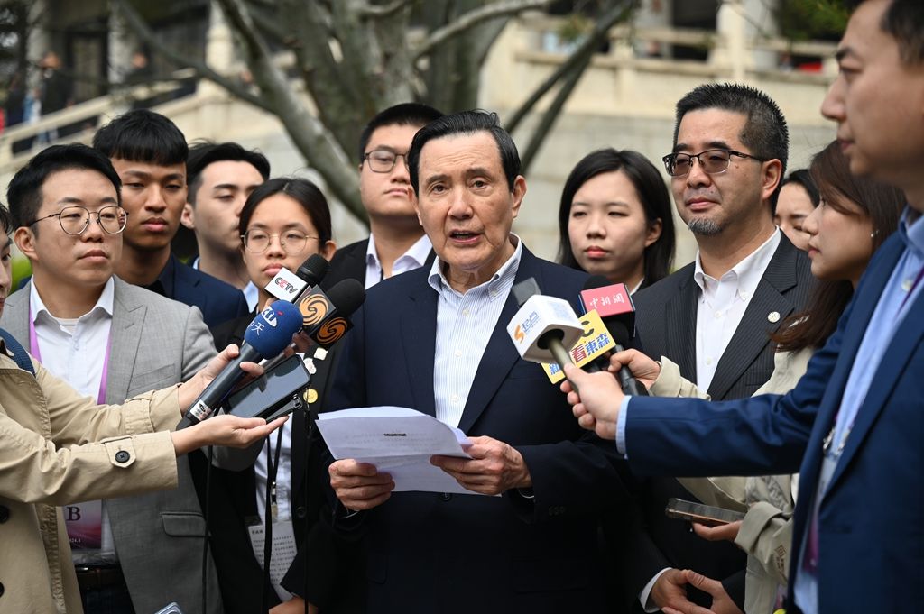 4月7日,马英九先生偕台湾青年一行到访陕西历史博物馆。参观结束后,马英九向媒体发言表示,保存中华典籍和文物是两岸共同的任务、可共享的经验。图/中新社