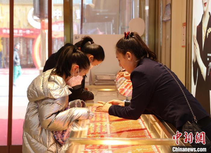 2024年2月,市民在商场内选购黄金饰品。中新社记者于晶摄
