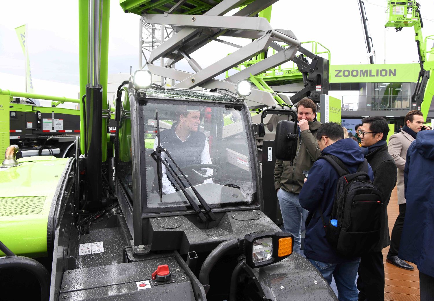 图为中国工程机械行业龙头企业中联重科的展台。图/中新社