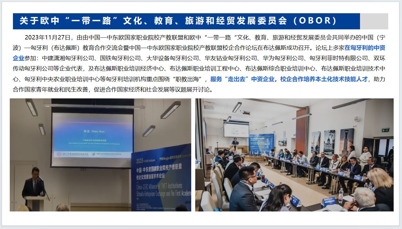 主题年会上,欧中“一带一路”文化、教育、旅游和经贸发展委员会代表还介绍了中匈职业教育合作的有关情况。