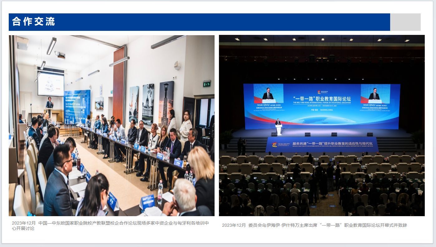 2023年11月27日,由中国—中东欧国家职业院校产教联盟和欧中“一带一路“文化、教育、旅游和经贸发展委员会共同举办的中国(宁波)—匈牙利(布达佩斯)教育合作交流会暨中国—中东欧国家职业院校产教联盟校企合作论坛在布达佩斯成功召开。论坛上多家在匈牙利的中资企业参加:中建潇湘匈牙利公司、国铁匈牙利公司、大华设备匈牙利公司、华友钴业匈牙利公司、华为匈牙利公司、匈牙利菲时特有限公司、双环传动匈牙利公司等企业代表,及布达佩斯职业培训经济中心、布达佩斯职业培训工程中心、布达佩斯综合职业培训中心、布达佩斯职业培训技术中心、匈牙利中央农业职业培训中心等匈牙利培训机构重点围绕“职教出海”,服务“走出去”中资企业,校企合作培养本土化技术技能人才,助力合作国家青年就业和民生改善,促进合作国家经济和社会发展等议题展开讨论。