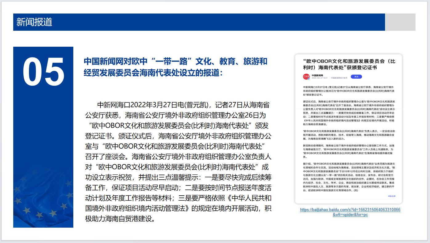 关于欧中“一带一路”文化、教育、旅游和经贸发展委员会(OBOR)