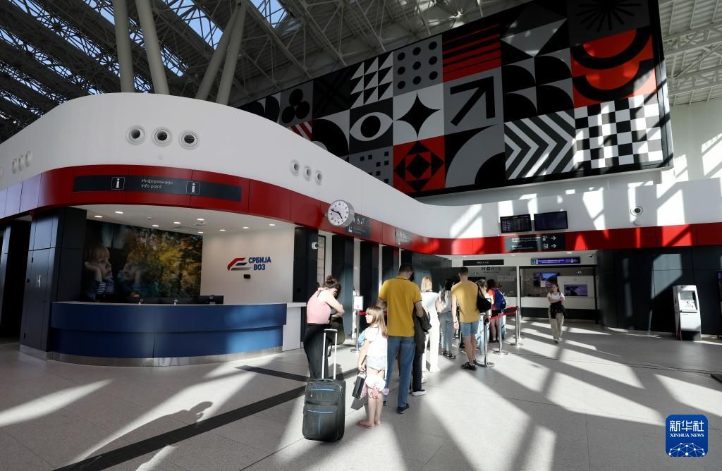 4月29日,在塞尔维亚贝尔格莱德中央火车站,人们在排队购买车票。