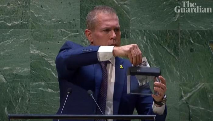 以色列驻联合国大使吉拉德·埃丹使用小型碎纸机,直接粉碎了一份《联合国宪章》,以表达对该特别会议的反对。他指出,是在场的联合国代表们“正在威胁《联合国宪章》”。