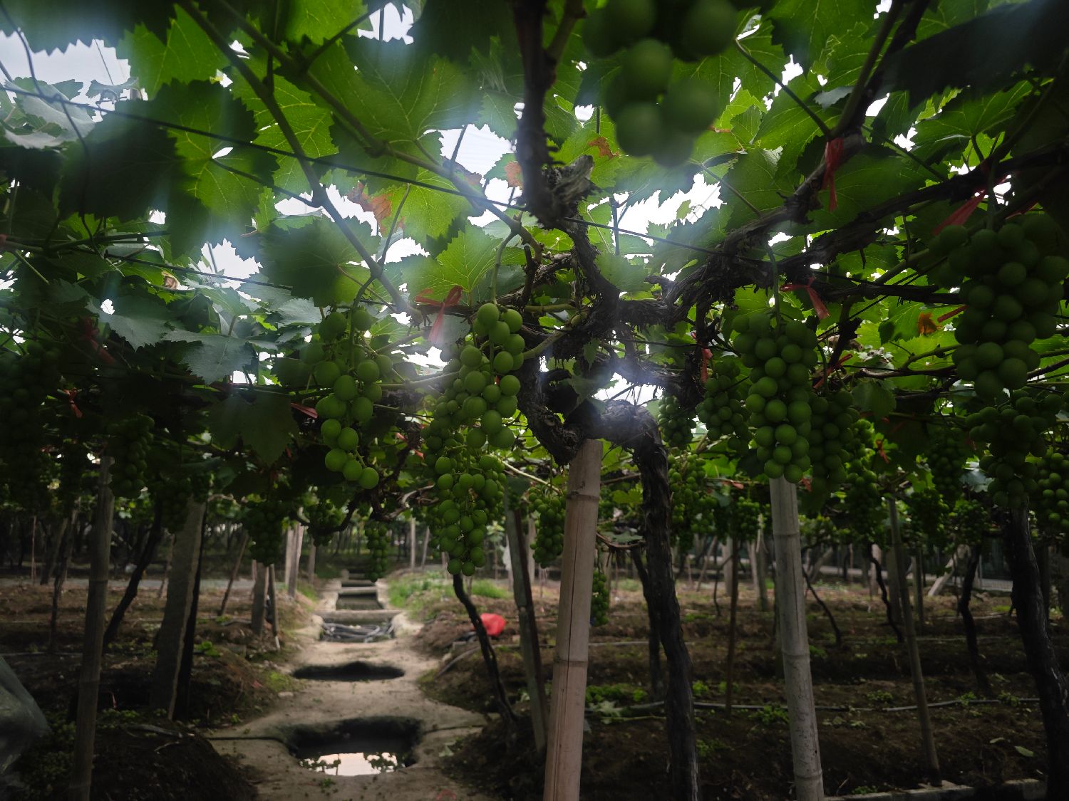 5月8日,在福建宁德福安市赛岐镇葡萄种植基地,一串串葡萄挂满枝头。图/均来自中新社