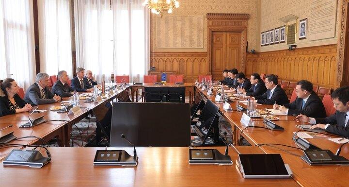 省委书记、省人大常委会主任易炼红在布达佩斯拜会匈牙利外交与对外经济部部长西雅尔多·彼得。记者翁浩浩摄