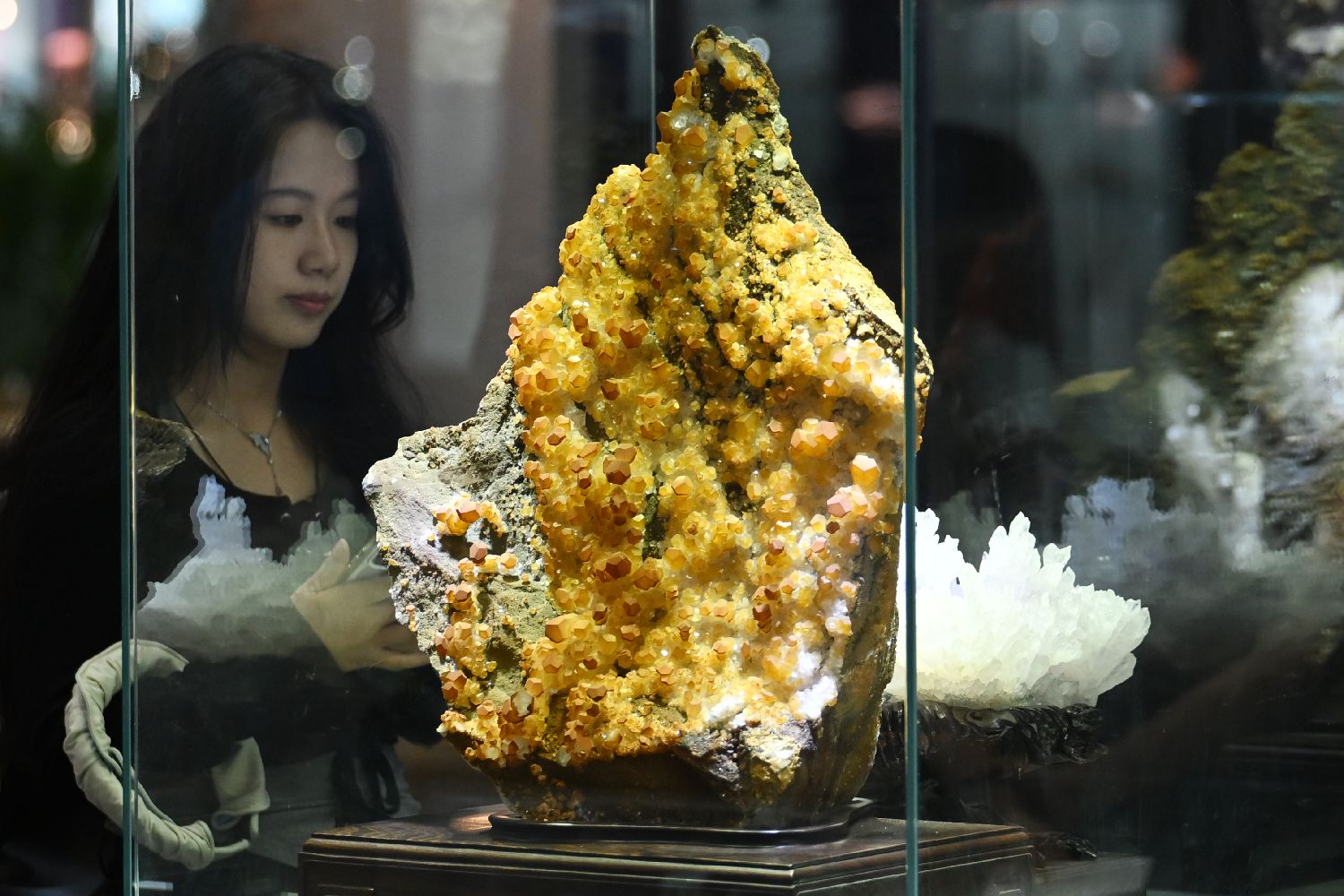 5月29日,以“矿蕴金陵 只此青绿”为主题的第二届中国南京(国际)矿物宝石化石博览会在江苏南京国际展览中心举行。图/中新社