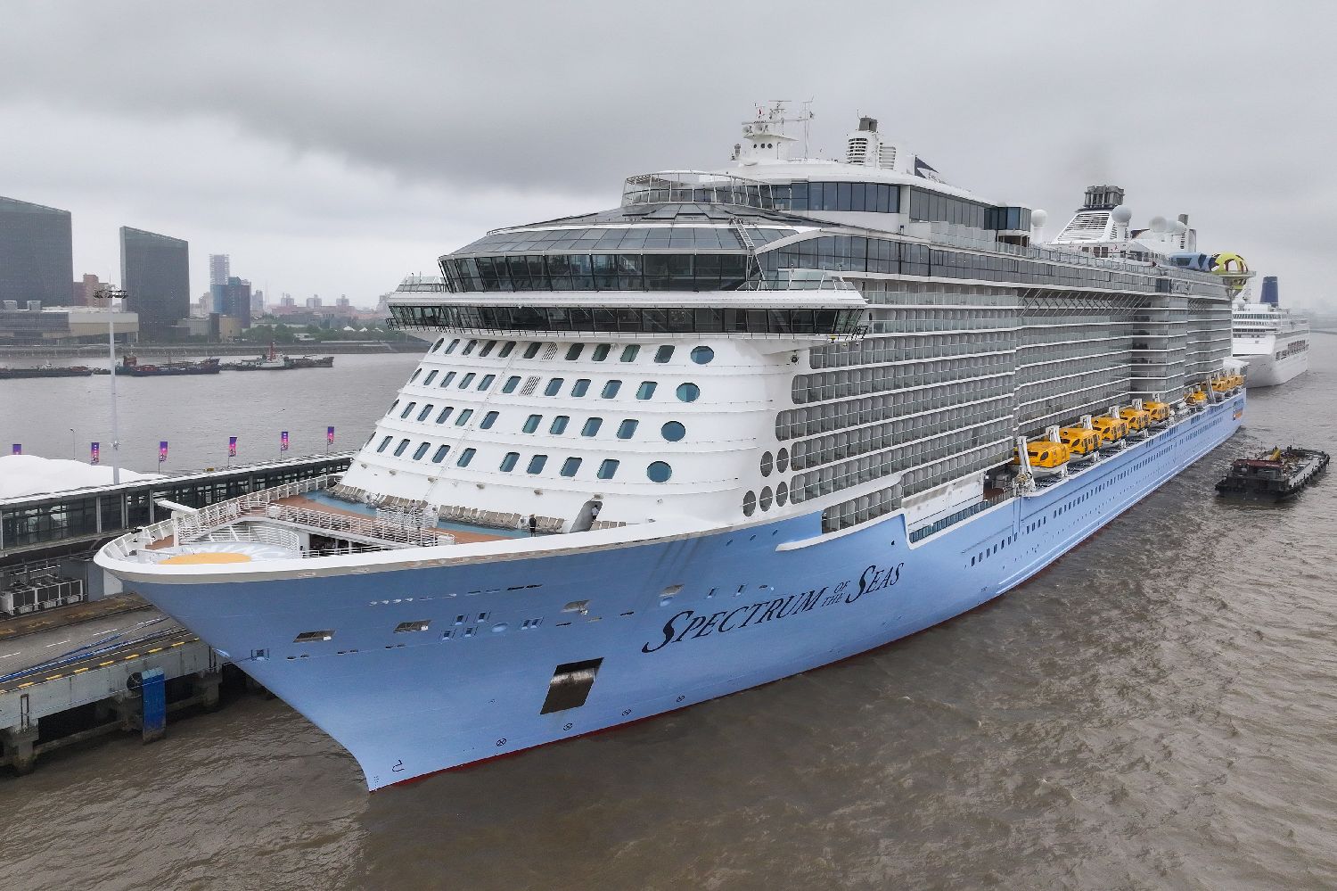4月26日,超大国际邮轮“海洋光谱号”回归阔别4年多的上海母港。图/中新社