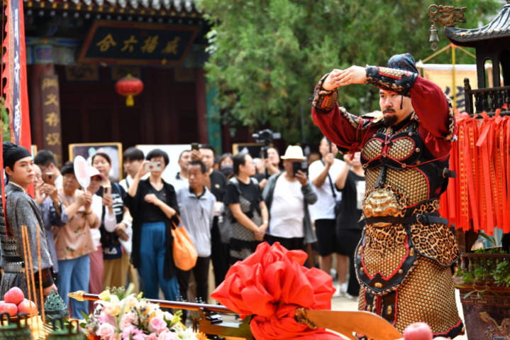 “演员身披的甲胄,以出土文物和相关壁画、塑像为基础,加入现代设计创新而成。”李加一介绍,当日仪式流程也有创新,结合关公文化中的“武文化”,以及“关公磨刀日”主题,加入了演武、祭刀等环节。